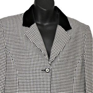 HOLT RENFREW Classic Houndstooth Wool Coatdress size10. In excellent Pre-owned condition. This fall to spring coat dress can be dressed up or down and will be a great addition to your wardrobe for many years to come. Features: fully lined, 2 front flap pockets, 3 button front, comfortable back slit, 3 buttons on sleeves, contrasting velvet collar, light shoulder pads, princess seam. Check tags for fabric content and care instructions. Check measurements before purchase. Smoke and pet free home.