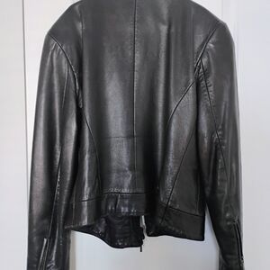 Elevate your style with this sleek black leather jacket from Ralph Lauren. Perfect for any occasion, it features a modern design with a zip front.