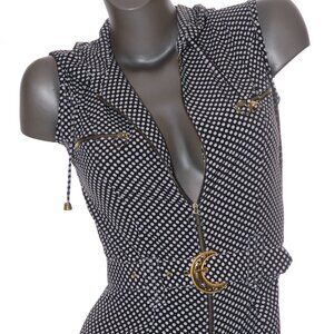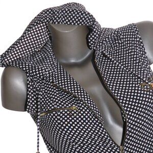 Black & White Polka Dot Jumpsuit / Romper with wide legs, hood & matching belt. Zip front with faux zip pockets on chest. Excellent condition. Work, party or play...