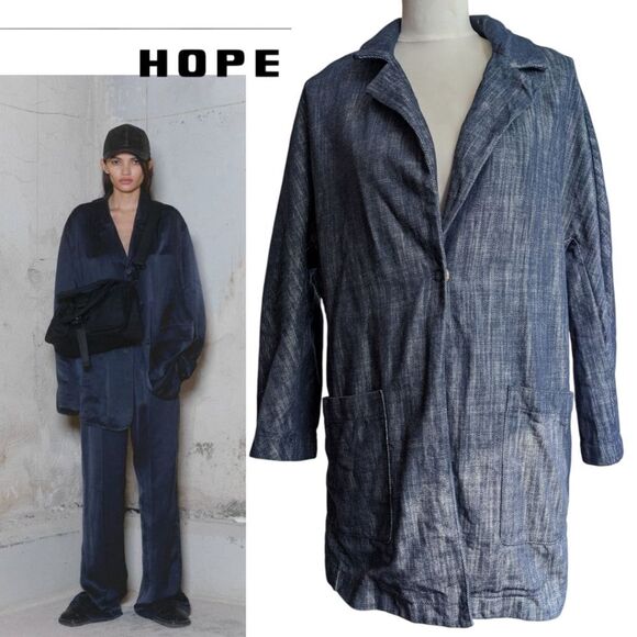 HOPE STHLM Stockholm 💯 Cotton Made In Italy Oversized Denim Blazer Jacket S