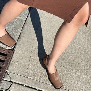 The Bare Loafer is a low heeled loafer-pump hybrid. It has a distinct yet classic square toe with an overextended outsole lip -- our favorite detail. The upper is made with a calf hair leather.