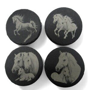 HORSE COASTERS Engraved Round Slate Rustic Home Decor Set of 4