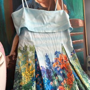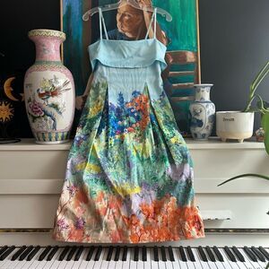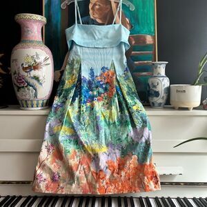 HOST PICK Anthropologie Blue Floral Scenic Midi Dress sleeveless XS