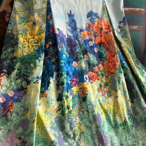 Elegant midi dress with vibrant floral design. Features a soft blue top with colorful floral patterns cascading down. Perfect for any occasion.