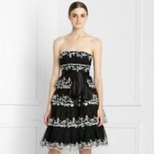 ⭐️ Features: Strapless, gorgeous tiered silhouette with hard tulle support underneath to make it poor out, embroidered floral detailing, black sash