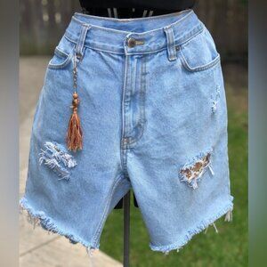 💫HOST PICK 💫 BOHO HIGH WAIST LIGHT DENIM DISTRESSED JEAN SHORTS SIZE 33/34