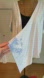 Details include damask patterns and splashes of blue “paint” on the sleeves and hemline. See video for details.