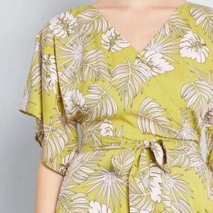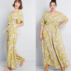 You can ramble on about your love of vintage-inspired style - or, you could let this chartreuse jumpsuit do the talking! A ModCloth exclusive designed in collaboration with Collectif, this pocketed beauty uses its surplice neckline, wide legs, sash-tied waist, pink frond print, and kimono-like sleeves to make your nostalgic appreciation evident.
