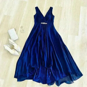 ✨HOST PICK✨ Eliza J Embellished High/Low Chiffon Dress in navy.