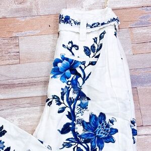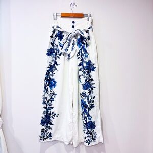 ✨HOST PICK ✨ FARM RIO Cream and blue floral linen wide leg pants