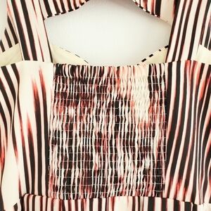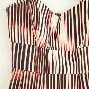 NWOT Beautiful Summer Peekaboo mini Sundress from GUESS Los Angeles. Red/Dark Navy/cream Striping, cut out front neckline. Fitted waist and gently flowy skirt. Mini length. Fully Lined Side Zipper closure