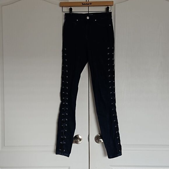 HOST PICK Guss Skinny High Side Lace-Up Jeans Size 24 Dark Blue Washed