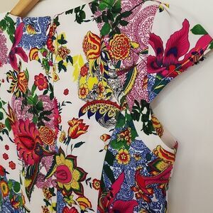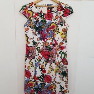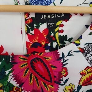 🌸HOST PICK🌸 JESSICA Fitted Cap Sleeve Floral Dress Size 8 Petite, excellent condition, like NEW, colors are stunning White dress with blue, green, fuchsia, Yellow and plum flowers and foliage.