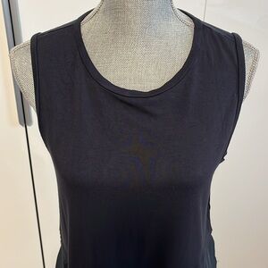 MICHAEL KORS layered sleeveless blouse tank top style in Navy. Tank top is stretchy with sheer layers on the bottom and gold MK logo. Perfect for the office as it’s a dressier style. NWOT