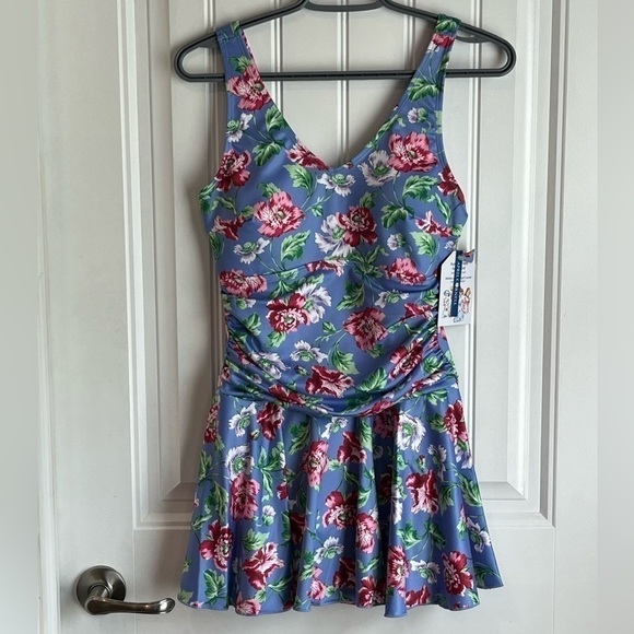 HOST PICK NWT April Cornell Mini Peony Skirted Swimsuit Swim Dress S Periwinkle