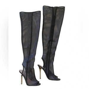 Over The Knee Fishnet Peep Toe Metallic Heels Boots Size 5.5