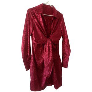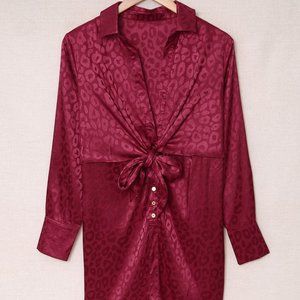 HOST PICK Red Burgundy Leopard Animal Pattern Tie Knot Satin Mini Dress Tunic L