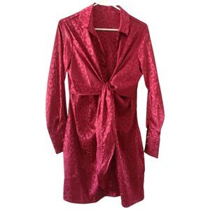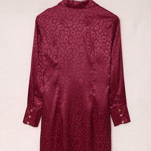 HOST PICK Red Burgundy Leopard Animal Pattern Tie Knot Satin Mini Dress Tunic L