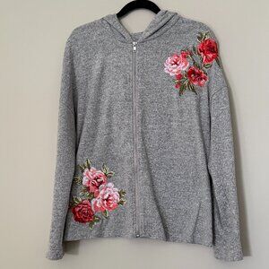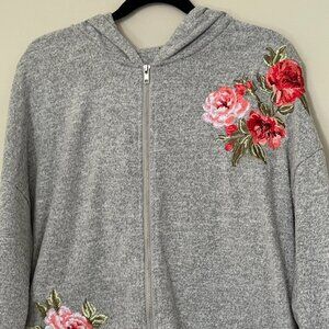 💖HOST PICK Rose Embroidered Long Sleeve Gray Zip Up Hoodie XL