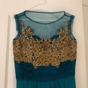 🔥HOST PICK🔥 Teal and Gold Applique Dress, size 0-2 (Stunning statement dress)
