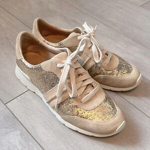 ⭐️ HOST PICK UGG Jaida Suede Leather Cream Gold Glitter Sneakers, Size 8