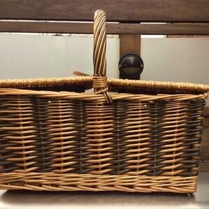 This beauty has never been used and comes fully equipped with plates, mugs, and cutlery – neatly strapped in and ready for your next sunny adventure. The woven wicker design paired with a plaid interior lining makes it both stylish and practical, the kind of basket that turns every picnic into a picture-perfect moment.