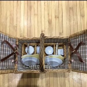 ✨HOST PICK✨ Vintage Stylish Cool Wicker Picnic Basket Dish Set - Never Used 🧺✨