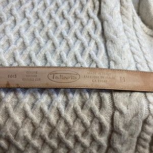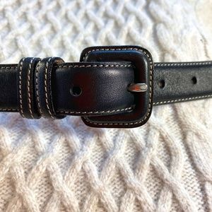 HOST PICK TONIGHT. This black leather belt has a leather covered buckle, contrast stitching and is made in Italy for Talbots. Size medium, it measures about 33" from buckle base to farthest hole with 4" adjustment available. 1" width. CHECK OUT my other vintage items!