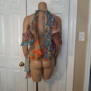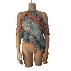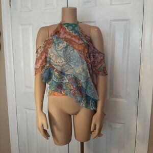 Zara multi-colour bohemian layered sheer ruffle top. Perfect for layering this fall or taking on vacation!