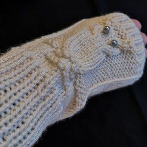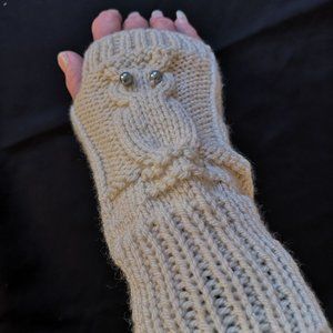 Brand New Handmade Cable Knit Fingerless Texting Gloves Mittens Arm Warmer Glovelettes - Owl / Night Bird / Hooter