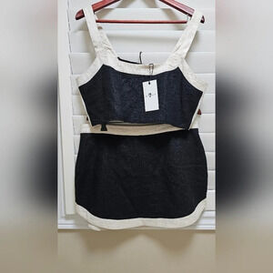 💯HOST PICK💯7 For All Mankind Colorblock Set Top Skirt Off White Black Linen XL