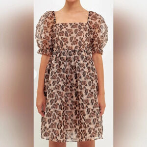 🐆HOST PICK🐆Endless Rose Organza Animal Fluffy Sleeves Baby Doll Dress size S