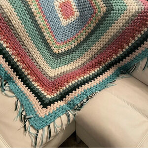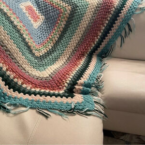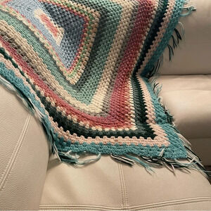 🌟HOST PICK🌟🌈Handcrafted Multicolored Knitted Blanket 🛌