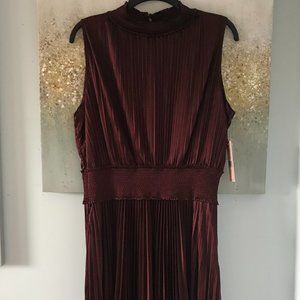 Size: 14. 100% polyester. Color: Merlot. Sleeveless. Pleated. Three button neck closure. Elasticized waist. Gorgeous red wine colour.