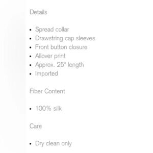 100% Silk fabric (dry clean only)