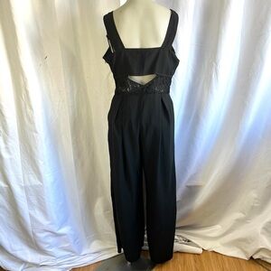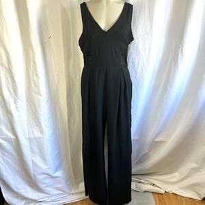 HOT PINK BLACK JUMPSUIT V NECK LACE DESIGN ON WAIST WOMEN SIZE LARGE