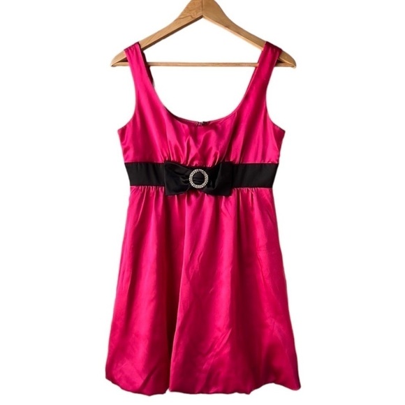 HOT PINK Black Bow Appliqué Mini Dress Size XXS