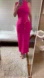 HOT PINK SLEEVELESS MOCK TURTLENECK MAXI DRESS BACK SLIT SPANDEX BLEND STRETCH