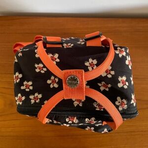Two handles as well as adjustable straps that are long enough for an adult or child.