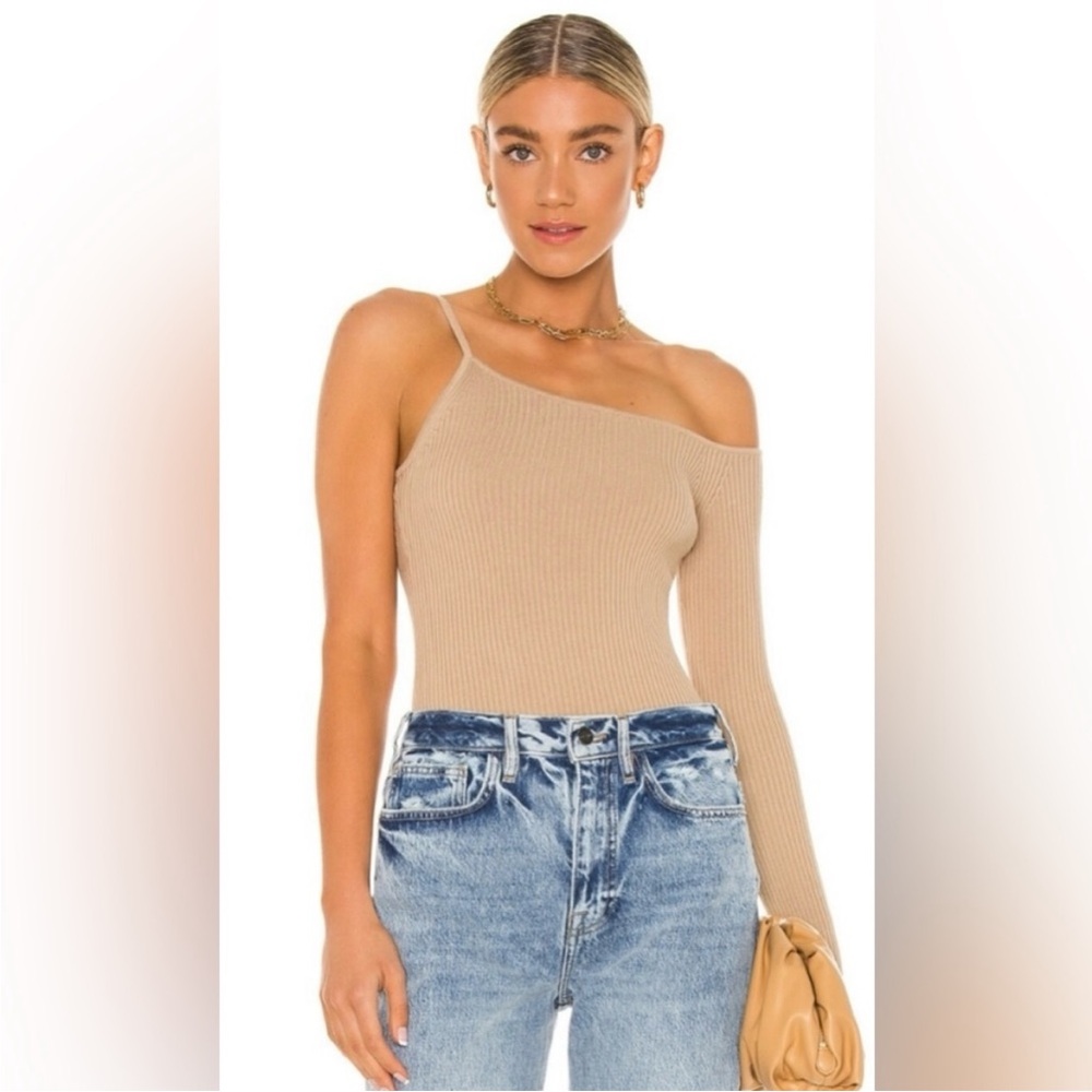 NWOT Never worn or washed. Elevate your style with this chic one-shoulder tan ribbed top. Perfect for any occasion, this top offers a sleek and modern look. Quality is on par with the brand - H:OURS REVOLVE.