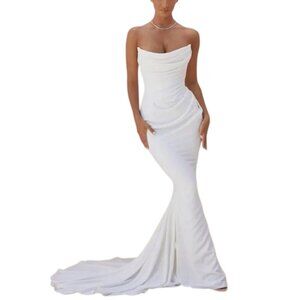 HOUSE OF CB- Esmee- Ivory Draped Strapless Wedding Dress- MED👰🏻♀️💌 🕊️💍✨