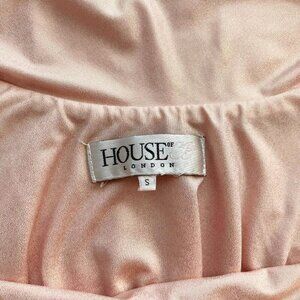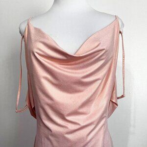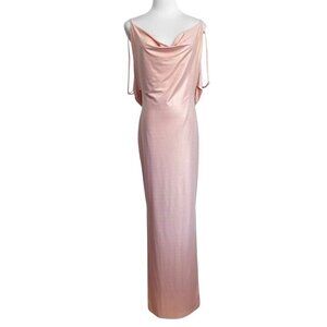 HOUSE OF CB LEONETTA METALLIC PINK COWL NECK OPEN BACK EVENING FORMAL DRESS - S