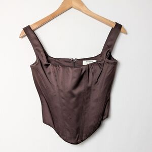 HOUSE OF CB Rafa Corset Chocolate Satin Longline Top Small