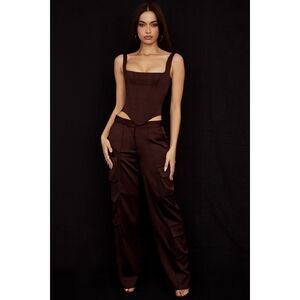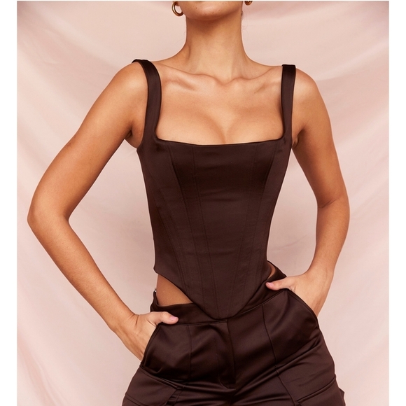 HOUSE OF CB Rafa Corset Chocolate Satin Top Small