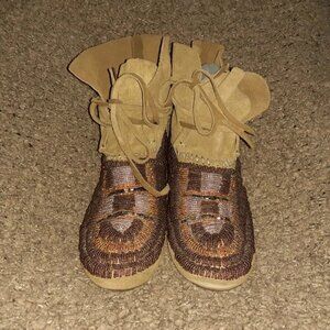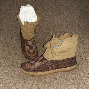 HOUSE OF HARLOW 1960-Maddie-Beaded Suede Moccasin Booties-36.5-Excellent