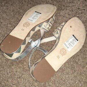 Sample, so no one else will have a pair! Nicole Ritchie's House of Harlow, woven beige and silver sling back platform sandals.
