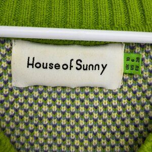 HOUSE OF SUNNY Swan Lake Green/Blue V-Neck Sleeveless Knit Vest US 6