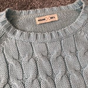 Baby blue knit sweater in excellent condition. I bought it when I was in Europe from a local streetwear store called HOUSE. It is made with good quality materials and will last a long time.