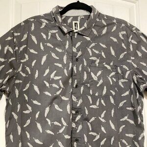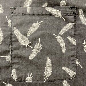 HOWE Dark grey white feather print short-sleeve button-down shirt MEDIUM LARGE