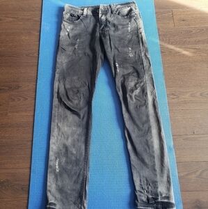 Medium distressed straight leg jeans in washed gray. Size 30 in good preowned condition.
